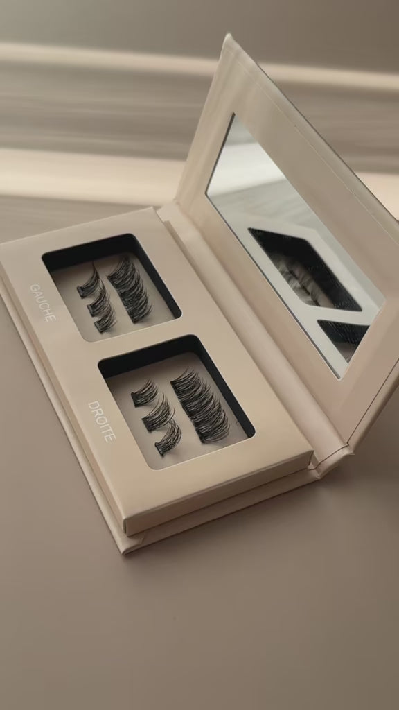 Chaque cil possède de petits aimants invisibles qui s’accrochent l’un à l’autre autour de vos cils naturels. Il suffit de placer une bande au-dessus et une au-dessous de vos cils : clic, ils se fixent instantanément sans colle ni produit.